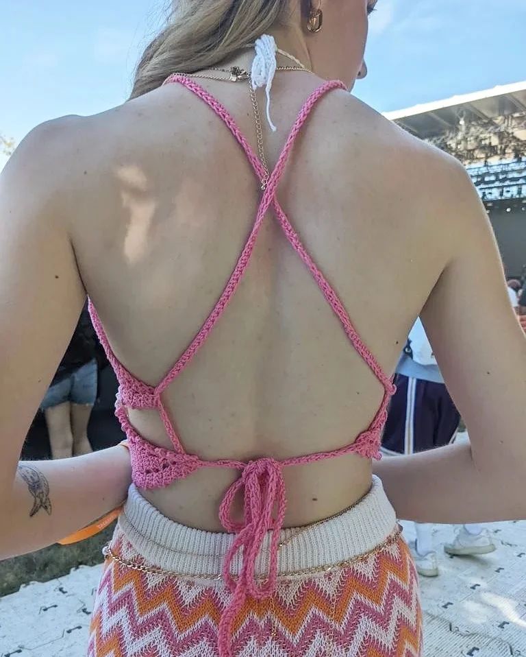 Top papillon 🦋en dégradé de rose . Fait main au crochet .100%coton, ne gratte pas. taille ajustable grâce aux lacages dans le dos, ce modèle convient pour des tailles S et M