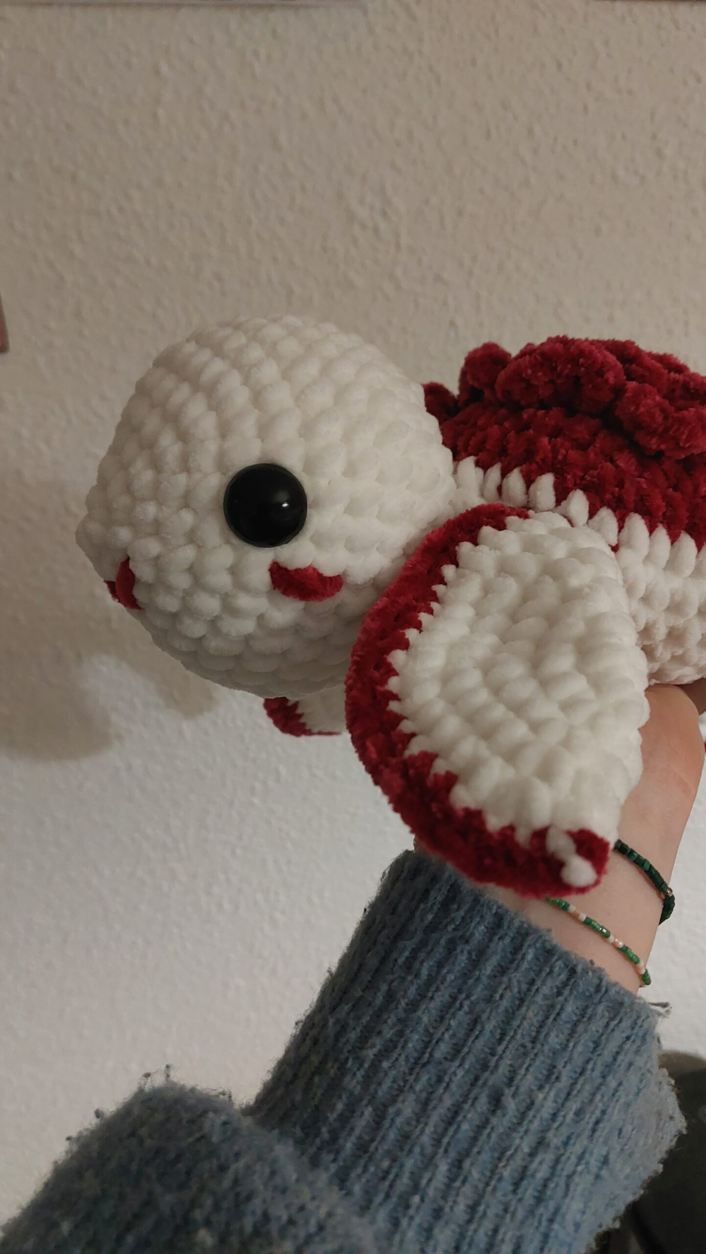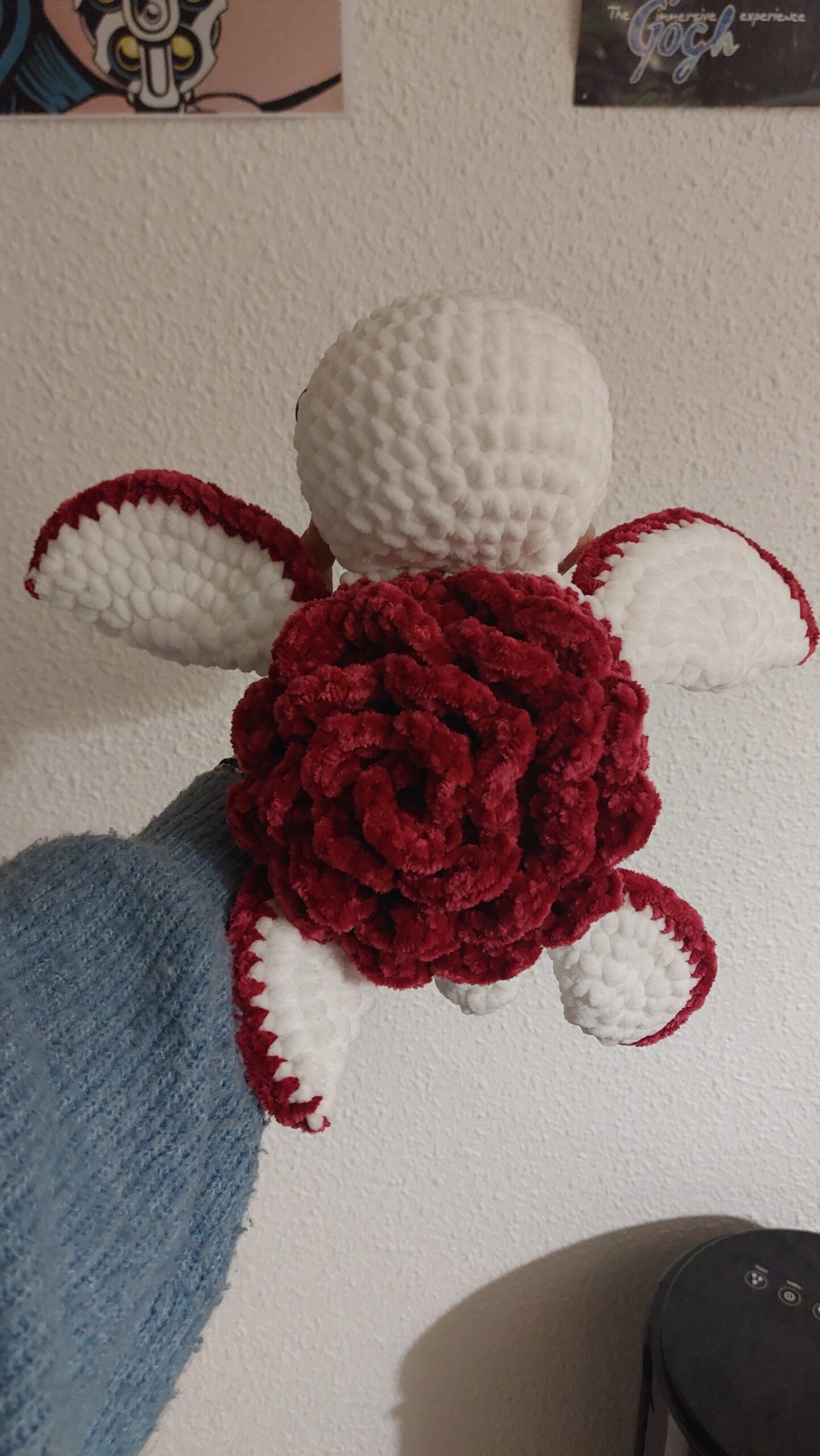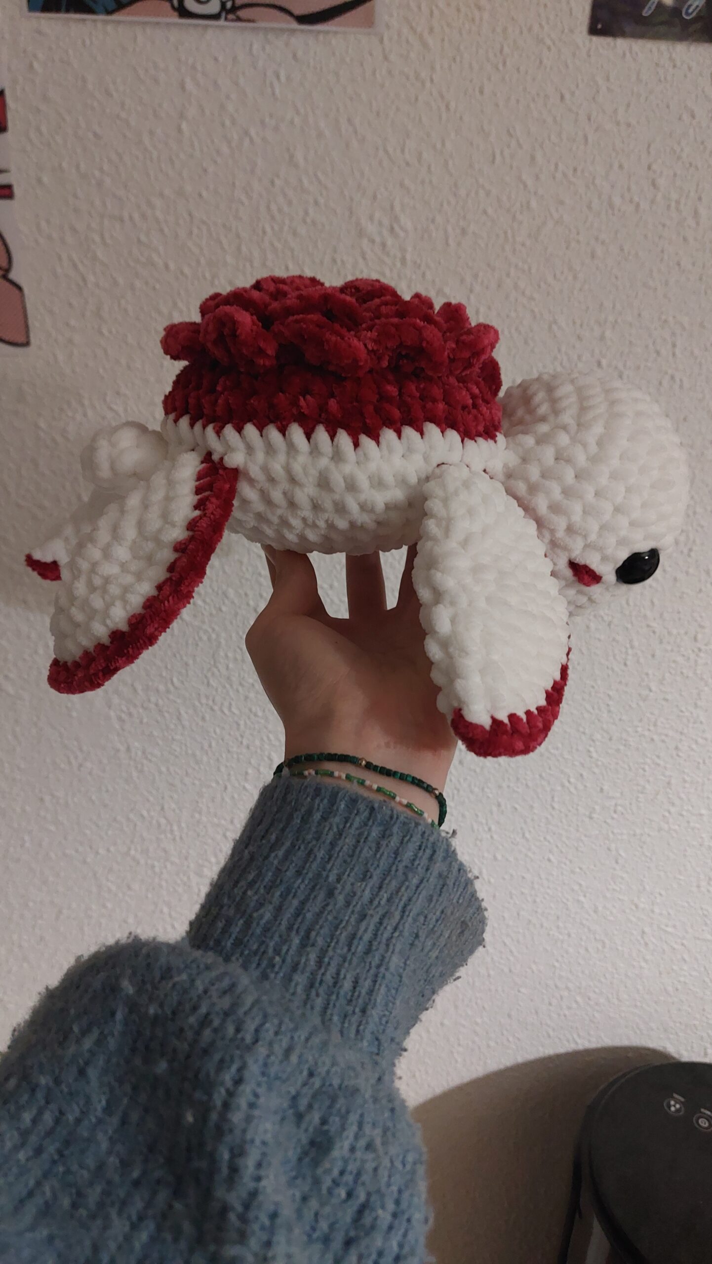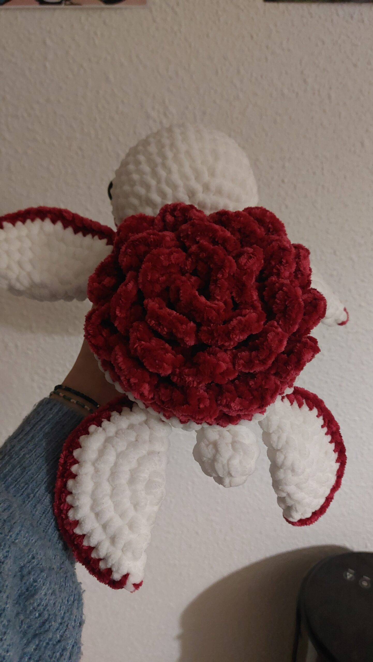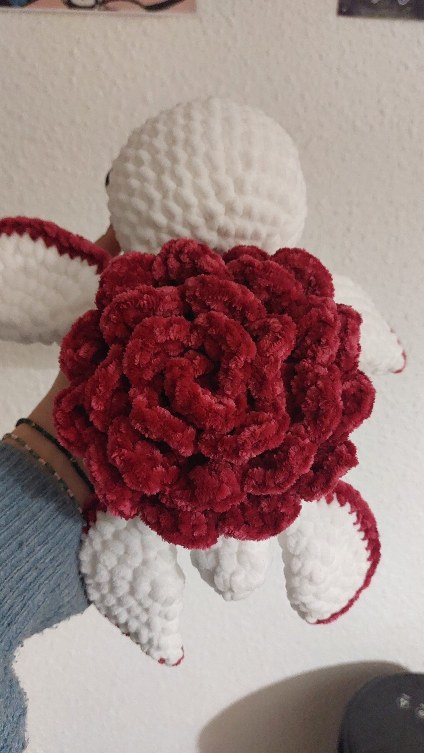 Tortue géante avec une rose sur la carapace 🌹🐢. Fait main au crochet avec de la laine ultra douce. Yeux de sécurité et détails sur les joues. Idéal pour cadeau.